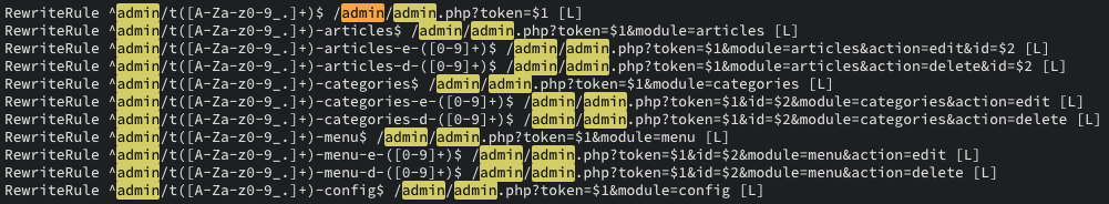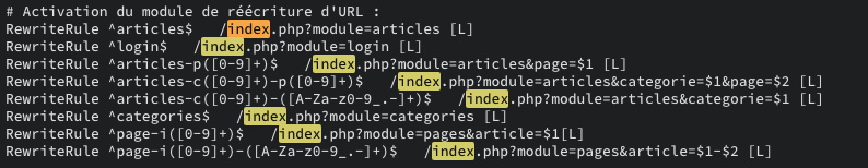Le fichier est configuré avec un mode URL Rewriting actif, c'est pourquoi vous trouverez en première ligne :
