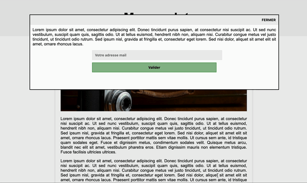 Maintenant ce que nous souhaitons c'est que lorsque l'utilisateur clique sur le bouton "Fermer" le pop-up n'appraisse plus sur la page.