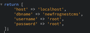 Dans le fichier `config/database.php`, renseignez les informations de connexion à votre base de données.